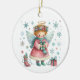 Whimsical Cute Pink and Blue Christmas Angel Ceramic Ornament