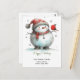 Whimsical cute snowman wearing a Santa hat and a red bird on a postcard. Text can be changed. AI assisted graphic purchased with commercial use. Artwork: RedHeronLighthouse