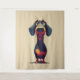Whimsical Dachshund Character Illustration Tapestry