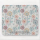 Dandelion Pattern Mousepad - A charming seamless pattern featuring whimsical, stylised flowers and intricate dandelion seed heads, paired with abstract botanical details. The muted palette of blues, teals, yellow, red, orange, and white on a soft grey-blue background creates a soothing, harmonious look.