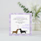 Cute bridal shower invitation done in a pretty lavender and pink floral background. A white text area over the background is decorated, with a brown and a black dachshund, with pink hearts between them. All text is customisable to suit your event needs. Adorable wedding shower invitation the bride to be will cherish.