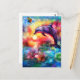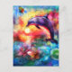 Whimsical Dolphin Coastal Nautical Floral Teal Postcard
