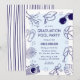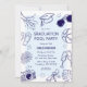 Unleash the spirit of summer fun with our whimsical doodle Graduation Pool Party invitation! Framed with navy blue doodle illustrations on a dusty blue background, this invitation captures the essence of sunshine and laughter. The modern grad party template, adorned with flip flops, scroll, camera, beach ball, motarboard, sunglasses, tropical palm leaves, inflatables and drinks, promises a celebration to remember. Perfect for grads who want to celebrate their success in the sun!