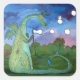 Whimsical Dragon Art Sticker Blowing Bubbles