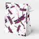Whimsical purple, pink and black dragonflies scattered with swirls.