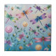 Whimsical Dragonflies with Flowers Ceramic Tile
