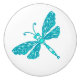 Whimsical dragonfly aqua inked art doorknob ceramic knob