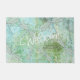 Whimsical and beautiful dragonflies welcome door mat. Mix of teal, blues and greens and grey with dragonfly pattern. Large welcome and customisable name. Jenn's Emporium.