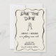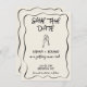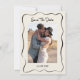 Hand drawn and whimsical style wedding save the date featuring two champagne glasses, hand written font text and a quirky frame border. This hand drawn illustration wedding save the date also features the couples photo on the back.