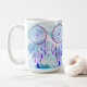 A dreamy depiction of magenta and purple shaded floral dreamcatchers in the clouds. One can dream away looking at this eye-catching mug. Whimsical dreamy vibes.