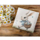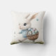 Add a touch of spring magic to a nursery or playroom with this charming throw pillow. The front features a hand-painted style illustration of a fluffy white bunny in a blue chequered sweater carrying a basket of colourful eggs. The reverse side displays a clean "Happy Easter" sentiment, making it a perfect reversible accent for seasonal home styling.