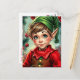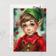 A sweet personalized Christmas postcard with a cute elf cartoon and a festive background. On the back you can add your own special holiday greeting and names.