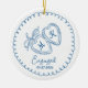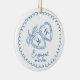 This ceramic ornament features crisp blue line art printed on smooth white ceramic with a gold hanging cord. The doodle illustration maintains its hand-drawn charm while looking clean and professional. Durable construction means this engagement keepsake will last for decades of holiday decorating.