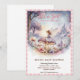 • A magical watercolor invitation featuring a fairy sitting on a mushroom surrounded by twinkling stars, enchanted flowers, and a faraway castle. This whimsical design is framed by a sweet pink gingham border, perfect for a fairy garden or fantasy-themed baby girl shower.