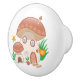 Whimsical fairy mushroom house with round doors and windows, Chinese lantern plant for a porch light, tiny windmill on a roof, and even a pantry inside a smaller mushroom.
