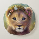 Whimsical Fantasy Cute Kawaii baby lion cub Round Cushion