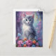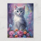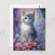 Send a touch of whimsical beauty with our Whimsical Floral Fantasy and Kitten Postcard. This vibrant postcard features an artistic vision of a colourful floral garden, complete with an adorable grey kitten surrounded by beautiful fantasy flowers. With its captivating design, this postcard is the perfect choice for cat lovers. Whether you're sending warm greetings or simply brightening someone's day, this lovely postcard will add a touch of whimsy and charm to any recipient's mailbox.