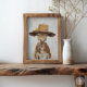 Bring a touch of rustic charm and whimsy to your decor with this delightful illustration of a calf wearing a playful straw hat adorned with a small yellow flower. This endearing artwork captures the innocence and playful nature of the young calf, making it a perfect addition to any nursery, farmhouse-style room, or as a thoughtful gift for animal lovers. The detailed textures and warm tones create a cosy, inviting atmosphere, making this piece a wonderful addition to your art collection. Celebrate the beauty of farm life with this charming calf print.