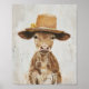 Whimsical Farm Animal Cow Painting Calf with Hat Poster