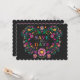 This vibrant fiesta-themed Save the Date announcement card design features whimsical & intricate Mexican floral pattern in hot pink, purple, orange, green, yellow and turquoise on a dark charcoal background. Use the template fields to add your details. Please click the "Customise Further" button to re-arrange elements if required.
