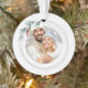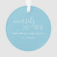 A perfect gift for newlyweds or anniversary weddings, this elegant acrylic Christmas ornament features front photo encircled by a string of holiday lights. Our first Christmas as Mr. & Mrs. with the date curves over the top of your photo. The words Merrily Ever After is set in white hand lettered typography over a solid baby blue background on the back. Customise this round ornament with your names to create a unique keepsake for a Christmas wedding gift. To see more designs visit www.zazzle.com/vginvites