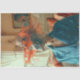 Bernice's orange hat is a statement piece, adorned with feathers and mesh, exuding a sense of grandeur. The blue shirt provides a relaxed contrast to the hat’s extravagance, adding to Baxter’s laid-back yet stylish demeanour. Set against a backdrop of classical artwork and warm tones, Baxter’s attire stands out, reflecting his unique personality. Bernice's attire and style blend the surreal with the fashionable, creating a whimsical and eye-catching appearance. Decoupage paper for chairs, furniture, canvas and poster art.