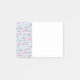 Sticky notes with a pattern with a fun summery vibe. Pink flamingos and pineapples set on a light blue striped pattern with leaves and hearts all around.