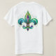 Brightly colored fleur de lis on a t shirt with customizable words and sayings for mardi gras.