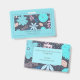 A whimsical hand drawn boho folk art style floral pattern badge with leaves and speckled greenery in lush turquoise and pink colours on a turquoise background. Add your name and title. Great for wellness fairs or events.