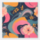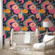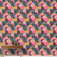 Immerse yourself in a vibrant, surreal garden where a stylised flamingo gracefully intertwines with lush, oversized blooms. This captivating design marries bold, fluid shapes with delicate floral elements, set against a deep navy backdrop. The playful colour palette of coral pink, teal, and marigold orange creates a striking contrast, evoking a sense of tropical warmth and modern sophistication. Perfect for fashion prints, home decor accents, or any project requiring a touch of whimsical elegance with a contemporary edge.