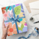 Wrap your gifts in a special and colourful way with this cute and whimsical wrapping paper. Orange, pink, purple, and yellow flowers are featured in the pattern, along with vibrant leaves and butterflies.