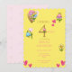 Whimsical Floral Yellow 4th Birthday Party Invitation