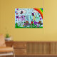 A large pretty colourful poster for a child's bedroom with the name Hannah. Colourful flowers, purple, pink, red, yellow, blue and green accents with a pretty rainbow, butterflies, caterpillars and ladybugs.