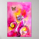 WHIMSICAL FLOWERS & BUTTERFLIES pink yellow blue Poster