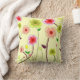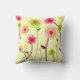 Brightly coloured, whimsical flowers on a pale yellow background would make a lovely pillow for your home.