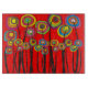Whimsical Flowers Cutting Board, funky and artsy flower design on a red background. Bright, bold and colourful this cutting board makes a statement.