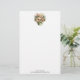 Stationery paper with a cute image. Blue. pink and cream colored flowers with green leaves. Set inside a green flower pot with a green plaid cloth hanging over the side.