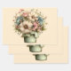 Wrapping paper sheets with a cute image. Blue. pink and cream colored flowers with green leaves. Set inside a green flower pot with a green plaid cloth hanging over the side.