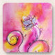 WHIMSICAL FLOWERS pink yellow fuchsia Coaster