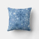 Whimsical flurry of blue snowflakes on sky blue cushion