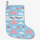 Whimsical flying pigs design Christmas stocking with customisable text.