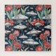 Whimsical Flying Saucers and Red Flowers Navy Jigsaw Puzzle