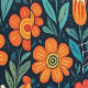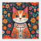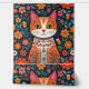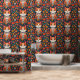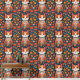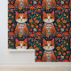 Whimsical Folk Art Cat and Flowers Wallpaper