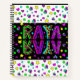 Whimsical Folk Art Girl's Name Raya stars and hearts purple, pink, black, lime green Notebook.
