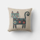 Whimsical Folk Art Retro Boho Cat Beige Cushion