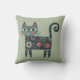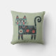 Whimsical Folk Art Retro Boho Cat Sage Cushion