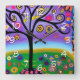Whimsical Folk Art Style Tree Square Wall Clock