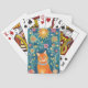 Whimsical playing cards for cat lovers features an orange tabby cat surrounded by folk art flowers. Digital watercolor created using AI generating software.