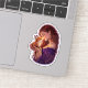 This whimsical fox die-cut sticker features a gentle nose-to-nose moment between a glowing fox and a serene figure, surrounded by soft sparkles and warm, magical light.