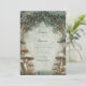 Invite your guests into a world of pure magic with this enchanted forest wedding invitation design. You'll love the incredible detail of the towering, ancient tree archway that gracefully frames the top, creating a natural cathedral. At the base, a whimsical cluster of detailed brown and tan mushrooms and mossy ground cover brings a cosy, fairytale feel to the entire scene. The artwork is beautifully enhanced by scattered golden light specks and hanging fairy lights, suggesting a deeply romantic twilight setting. The central space is outlined by a delicate double gold line arch against a dusty blue-grey background, which provides a stunning canvas for your wedding details. This invitation is perfect for setting the magical tone for a whimsical woodland ceremony, an elopement in nature, or a fantasy-themed reception. It's an unforgettable keepsake that tells your love story before the day even begins. This item's versatile design makes it an excellent choice for businesses, other celebratory events, or interior decorators looking for romantic floral décor.